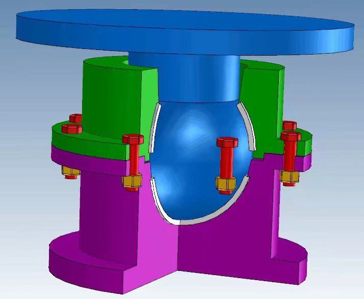 7、支座通過球面?zhèn)髁,不出現(xiàn)力的縮頸現(xiàn)象,作用在上、下結(jié)構(gòu)的反力比較均勻;